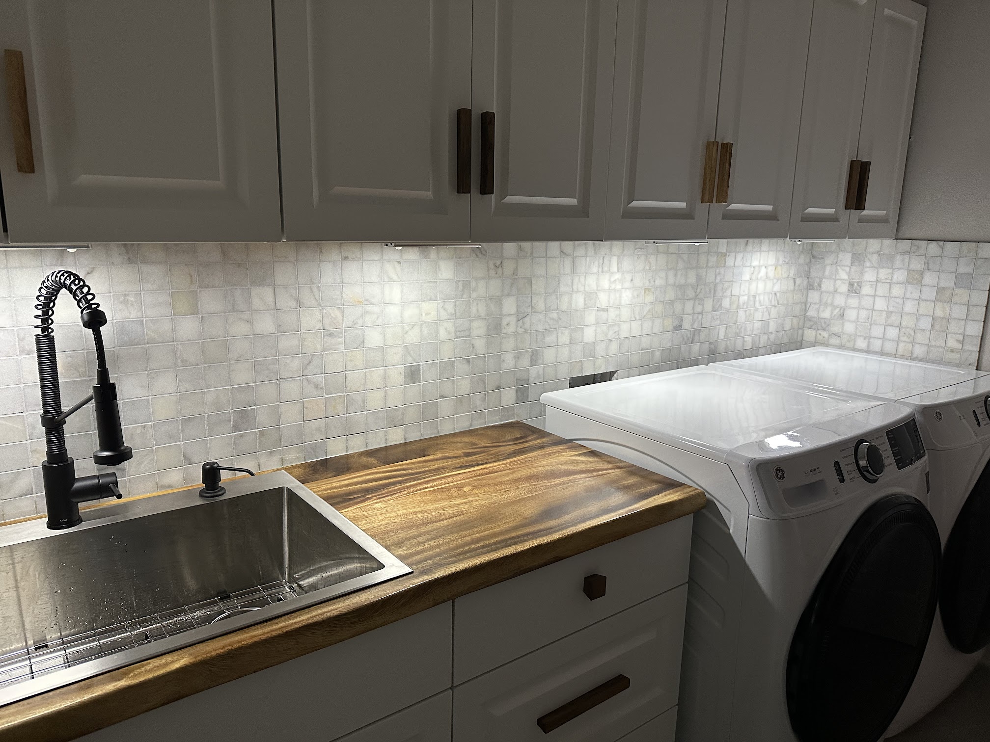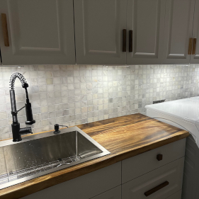 "I was doing my laundry project and needed someone to install backsplash mesh based tiles. Found Dima, he offered a very good price and was ready to start in a few days. Came early, did the work within a day and also checked it up next day to make sure everything turned out well. And backsplash did turn out amazing, all thanks to Dima’s attention to details and precision. I love it! Very professional, quick, high quality and at a low price. Will definitely reach out to him on my future project." — Artem Akimov